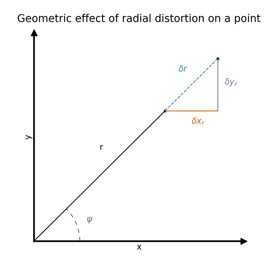 $$ \delta y_r = \cos(\psi) \delta r = \frac{y}{r} (k_1r^3 + k_2r^5 + k_3r^7) $$
